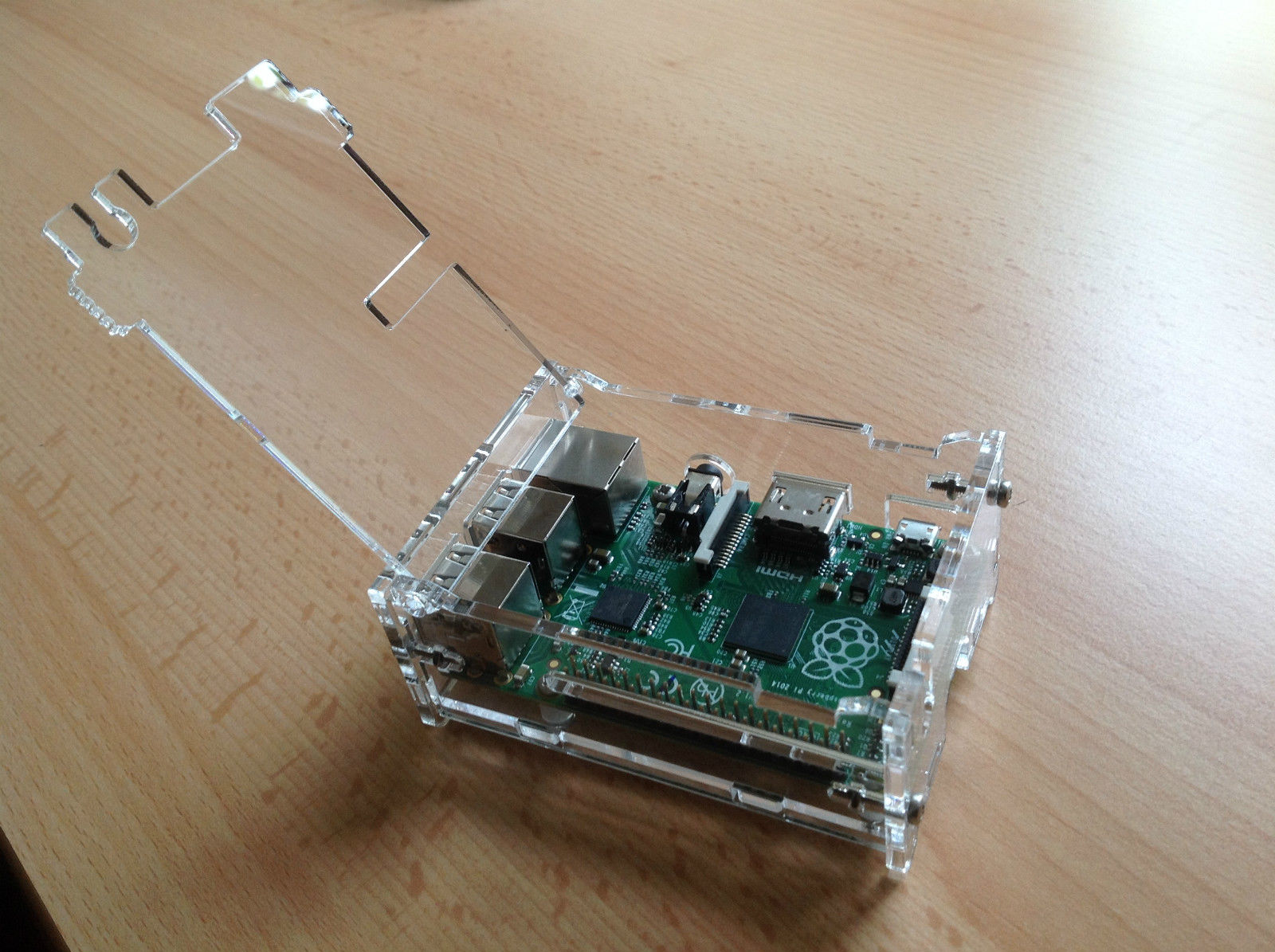 Bought a fancy acrylic box for the Pi and a Genuine Adafruit Pi Cobbler GPIO Breakout for Raspberry Pi Model B+ and a breadboard with power supply and jumpers